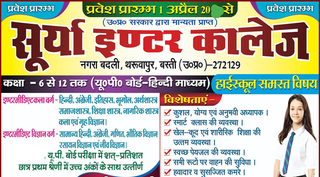 Welcome To Surya Inter College, Nagra badli, tharuapur-Basti